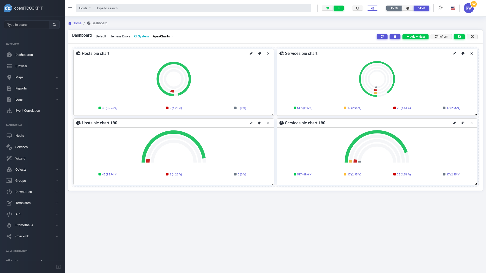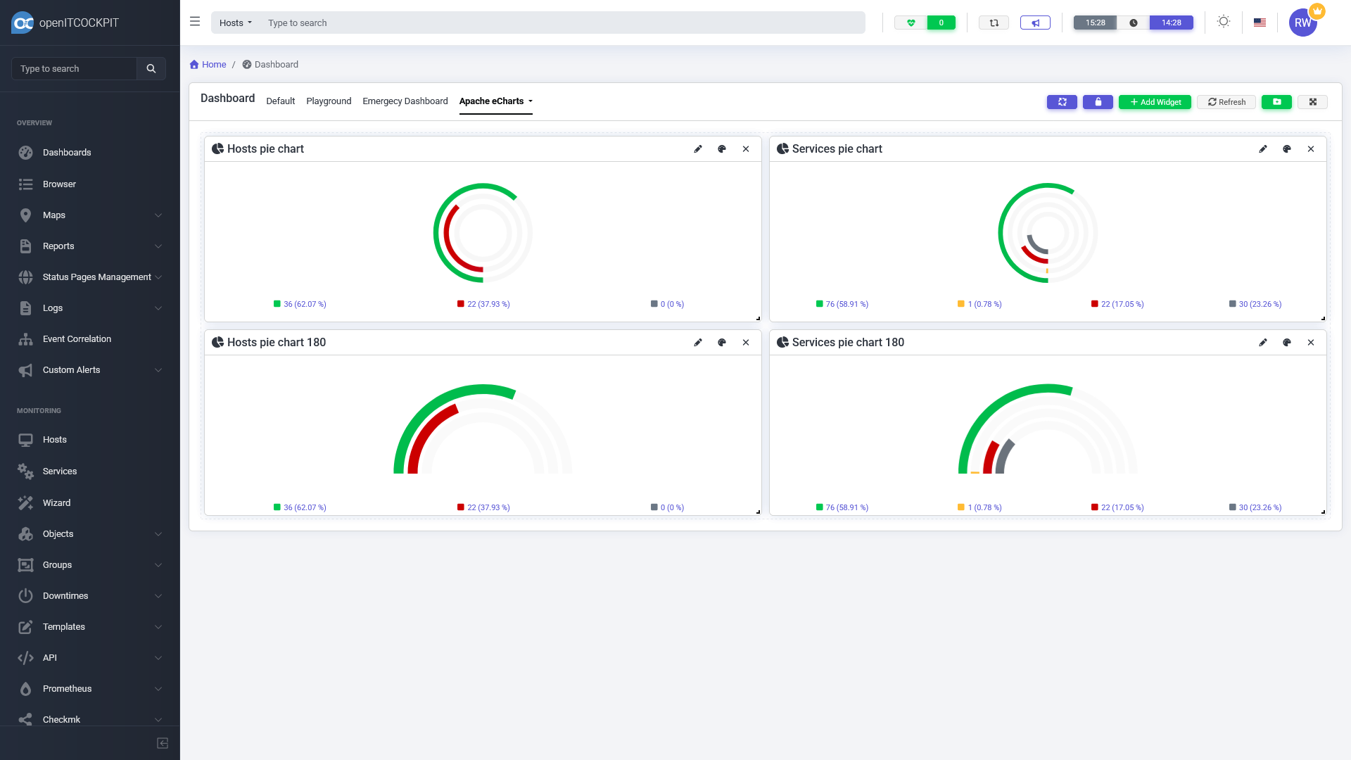 We have replaced charts built with the ApexCharts library with Apache ECharts. By reducing dependencies, we can update the underlying technologies of openITCOCKPIT more frequently. It is also more convenient for our developers to create all charts using the same technology and library.