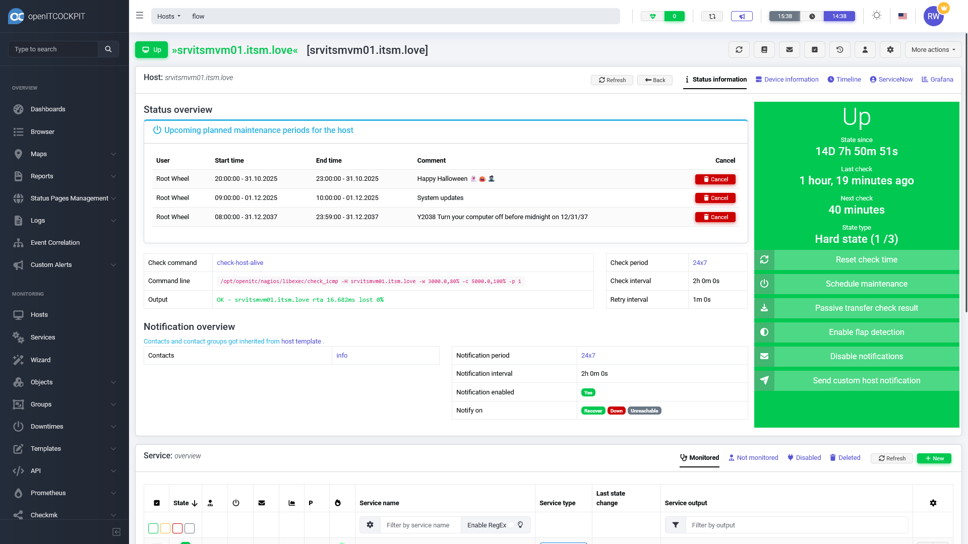 openITCOCKPIT version 5.2.0 has been released. It is packed with new features, including Umbrella Monitoring Support for FlowChief, improved visibility of upcoming maintenance periods, and new Wizards to monitor Cisco devices, Hyper-V environments and Broadcom Proxy servers.